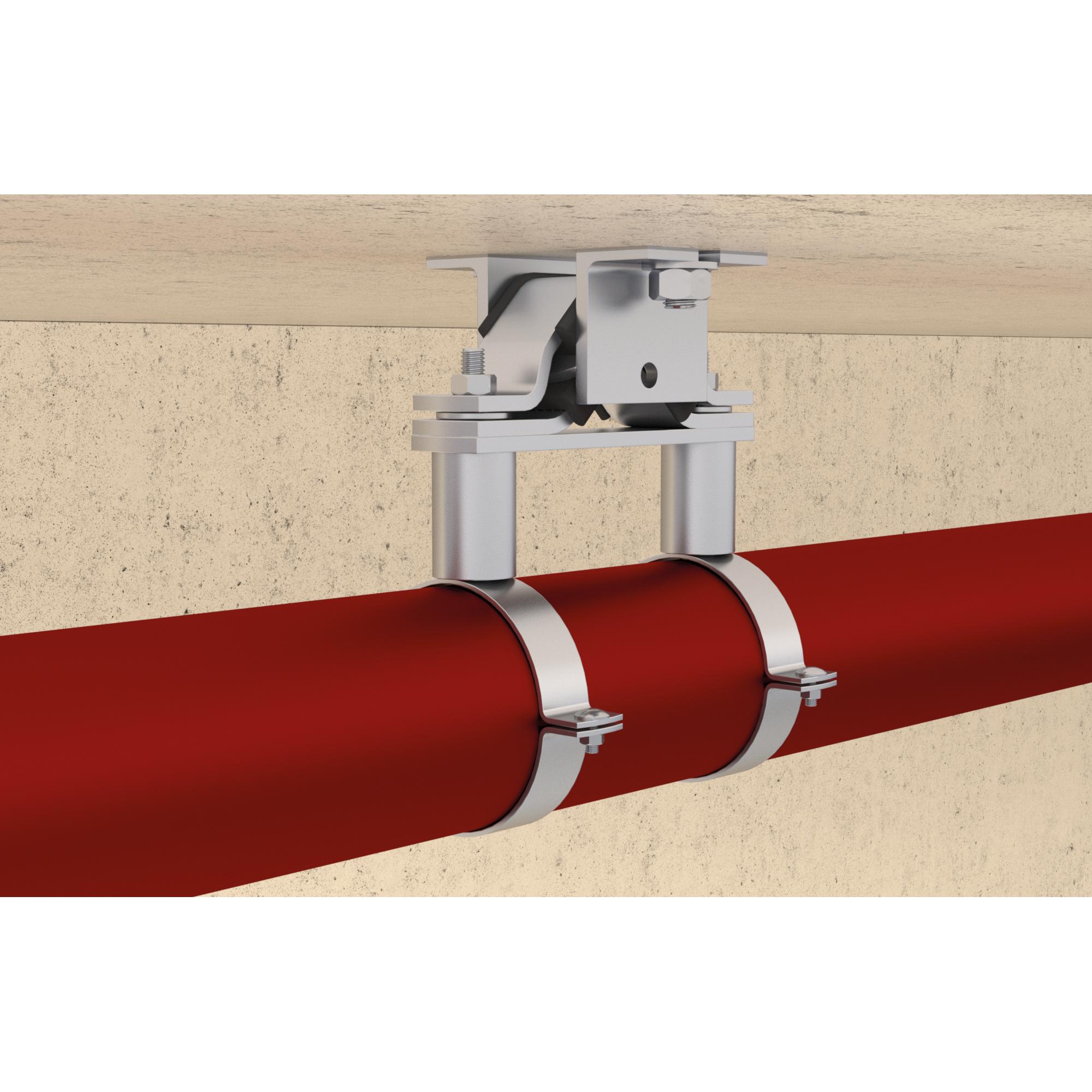 • Die kompakte Bauform des Fixpunkts ermöglicht die Aufnahme hoher Rohrlasten in jeder Einbaulage.