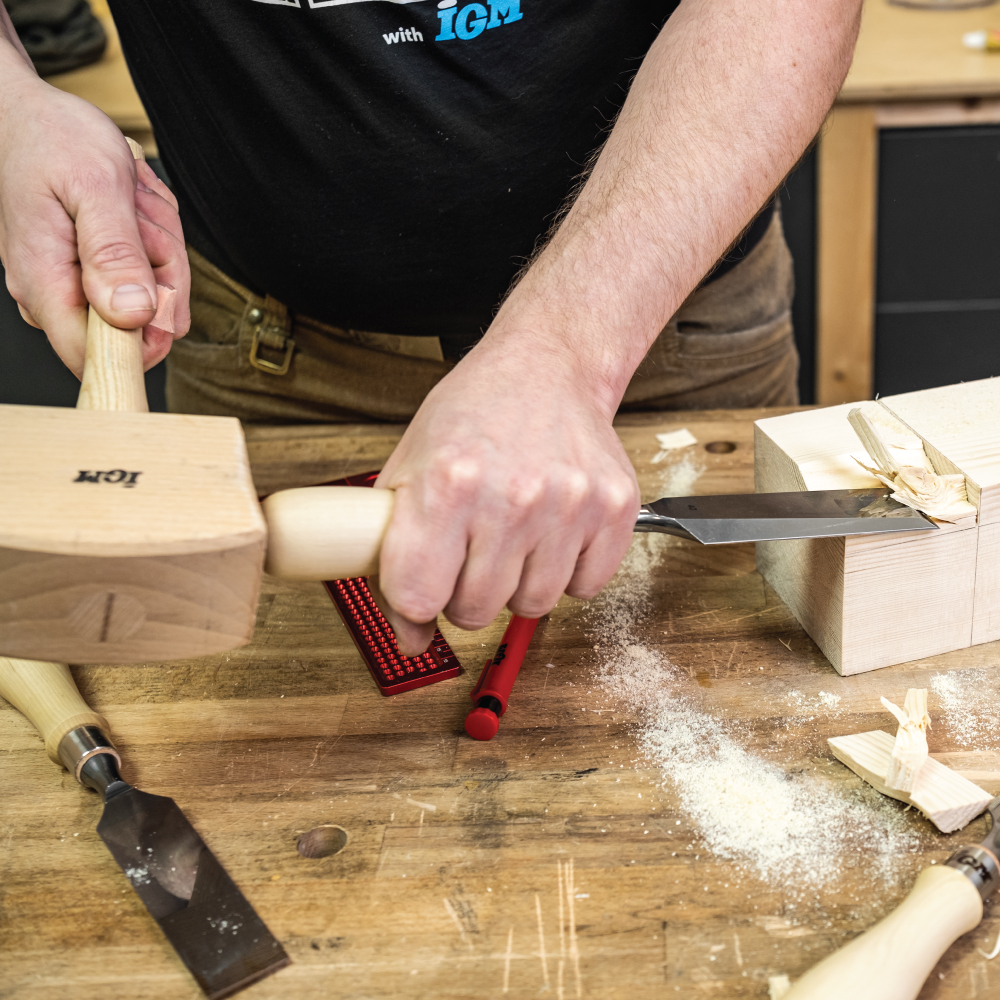 Der hervorragende Flachholzmeißel der Marke IGM eignet sich für Tischler, die Wert auf Qualität und traditionelle Handwerkskunst legen. Es ist zum Ausstechen von scharfen Ecken, Zähnen, Lücken und Stiften bestimmt. Die fein geschliffene, polierte Klinge ist aus hochwertigem hochlegiertem Stahl mit einer Härte von 60 HRC geschmiedet. Deshalb bleibt er im Vergleich zu gewöhnlichen Meißeln lange scharf. Die im 25°-Winkel geschliffene Klingenkante muss vor dem ersten Gebrauch geschliffen werden, um eine außergewöhnliche Schärfe zu erzielen. Wir empfehlen außerdem einen 30°-Mikrograt an der Klingenkante, um die Lebensdauer der Klinge zu verlängern.Die schmalen, geschliffenen Seiten der Klinge eignen sich ideal für Arbeiten auf engstem Raum, insbesondere bei der Herstellung von Zapfen und Schwalbenschwänzen. Der Griff des Meißels besteht aus hochwertigem und robustem Hainbuch, das auch starken Schlägen mit dem Hammer standhält. Der Griff ist fein poliert und von Hand geklebt und weist eine originelle ergonomische Form auf, die bequem in der Hand liegt. Der Meißel ist sehr schlagfest, da die Klinge in einem massiven Horngriff mit stoßdämpfendem Lederring und einem Edelstahlschaft untergebracht ist. Dies werden Sie vor allem beim Erstellen von Vertiefungen mit einem Holzhammer zu schätzen wissen. Flachholzmeißel IGM ist einfach ein einzigartiges Werkzeug, das Ihnen über Generationen hinweg Freude bereiten wird.