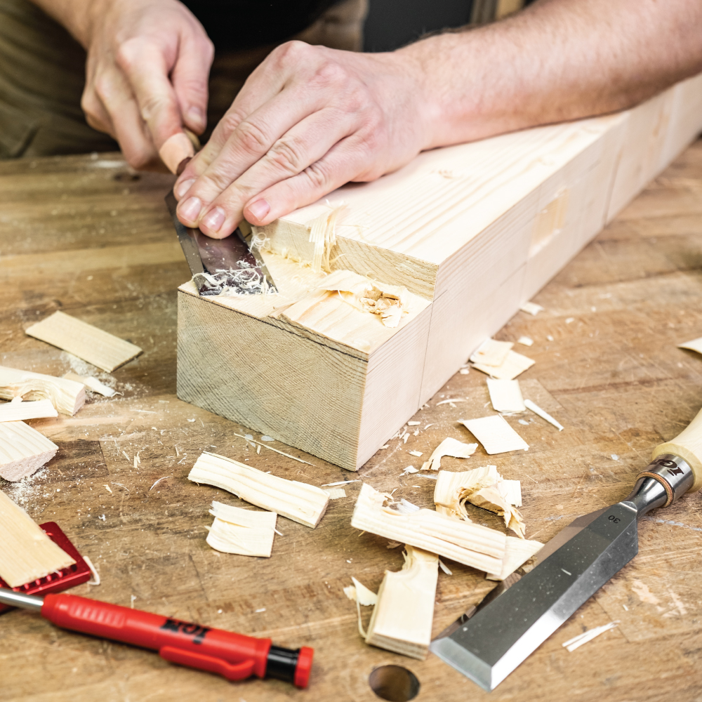 • Schmal geschliffene Seiten erleichtern das Arbeiten in Ecken und Schwalbenschwänzen.