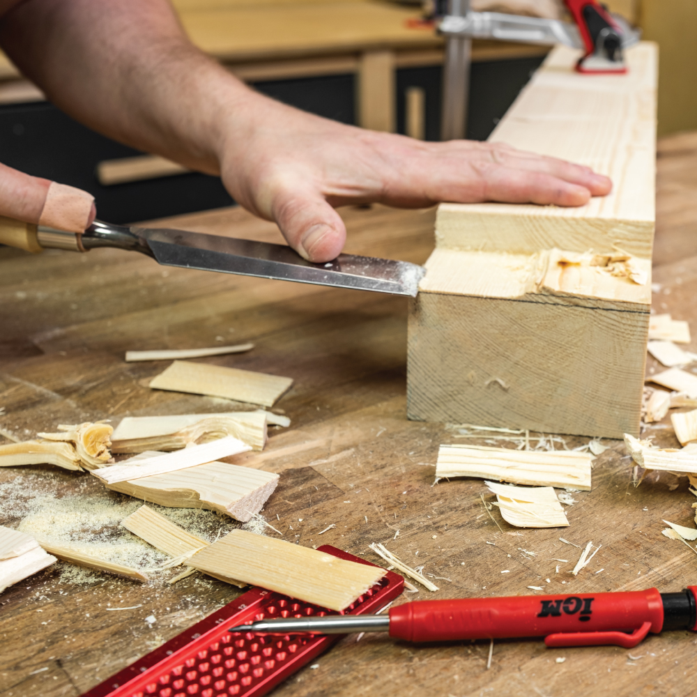 Der hervorragende Flachholzmeißel der Marke IGM eignet sich für Tischler, die Wert auf Qualität und traditionelle Handwerkskunst legen. Es ist zum Ausstechen von scharfen Ecken, Zähnen, Lücken und Stiften bestimmt. Die fein geschliffene, polierte Klinge ist aus hochwertigem hochlegiertem Stahl mit einer Härte von 60 HRC geschmiedet. Deshalb bleibt er im Vergleich zu gewöhnlichen Meißeln lange scharf. Die im 25°-Winkel geschliffene Klingenkante muss vor dem ersten Gebrauch geschliffen werden, um eine außergewöhnliche Schärfe zu erzielen. Wir empfehlen außerdem einen 30°-Mikrograt an der Klingenkante, um die Lebensdauer der Klinge zu verlängern.Die schmalen, geschliffenen Seiten der Klinge eignen sich ideal für Arbeiten auf engstem Raum, insbesondere bei der Herstellung von Zapfen und Schwalbenschwänzen. Der Griff des Meißels besteht aus hochwertigem und robustem Hainbuch, das auch starken Schlägen mit dem Hammer standhält. Der Griff ist fein poliert und von Hand geklebt und weist eine originelle ergonomische Form auf, die bequem in der Hand liegt. Der Meißel ist sehr schlagfest, da die Klinge in einem massiven Horngriff mit stoßdämpfendem Lederring und einem Edelstahlschaft untergebracht ist. Dies werden Sie vor allem beim Erstellen von Vertiefungen mit einem Holzhammer zu schätzen wissen. Flachholzmeißel IGM ist einfach ein einzigartiges Werkzeug, das Ihnen über Generationen hinweg Freude bereiten wird.
