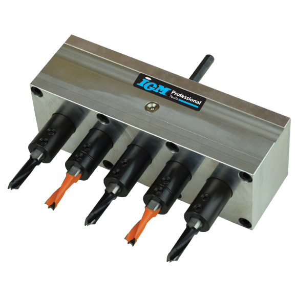 Die revolutionäre Bohrvorrichtung besteht aus einem Ständer und 8 Typen von Bohrköpfen, die auf dem Ständer montiert werden können. Dadurch können Sie Löcher für Hettich, Blum, Mepla, Grass, FGV Scharniere, kleine 26 mm Scharniere, Fenstergriffe bohren oder den 5-Spindel-Kopf mit 32-mm-Teilung zum Bohren von Löchern für Dübel oder Regalträger verwenden. Verwendung mit Handbohrmaschinen oder Ständerbohrmaschinen. Zur Schmierung ist das Mobil SHC100 Öl zu verwenden.
