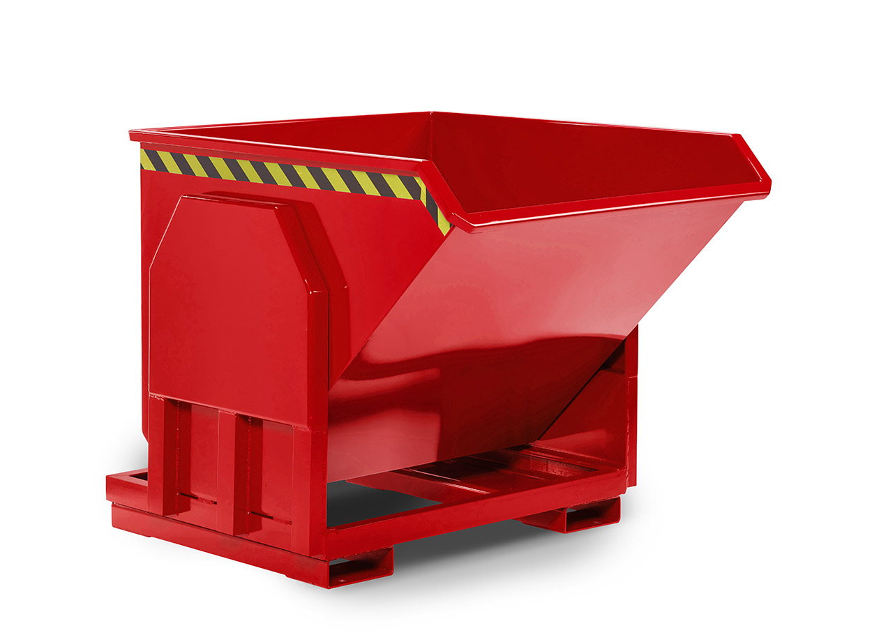 Bis 3000 kg Traglast – Schwerlastkipper Typ RMKDer Schwerlastkipper RMK in RAL 3000 Feuerrot bietet eine optimale Lösung zum Sammeln und Transportieren schwerer Rohstoffe und Abfälle. Seine Abrollkufe ermöglicht ein Kippen ohne Stöße auf den Hubgerüst des Staplers. Die Entriegelung durch Seilzug vom Staplersitz ist komfortabel, sicher und körperschonend. Eine Kettensicherung verhindert Abrutschen von den Gabelzinken. Dank 3mm Stahlblech mit umlaufender Randverstärkung und einem Grundrahmen aus 6 mm Stahlblech mit Querverstärkung ist der Behälter angenehm langlebig und robust.Hersteller-GarantieDer Hersteller RR Industrietechnik bietet für diesen Schwerlastkipper Typ RMK 5 Jahre Herstellergarantie.Weitere Farben auf AnfrageAuf Anfrage können Sie den Schwerlastkipper RMK gegen Aufpreis in folgenden Farben bestellen. RAL 5010 EnzianlauRAL 6011 ResedagrünRAL 2004 ReinorangeRAL 5018 TürkisblauRAL 7005 Mausgrau