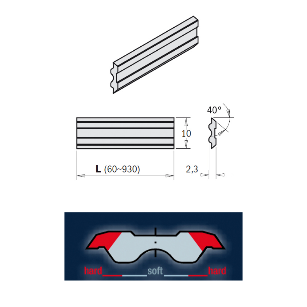 • Hochwertige Messer zum Hobeln von weichem und hartem Massivholz.