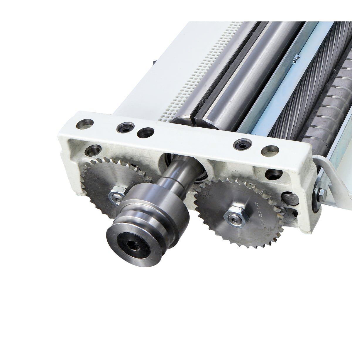• Schrägverzahnte Stahleinzugswalzen für einen konstanten und gleichmäßigen Materialeinzug ohne Abdrücke