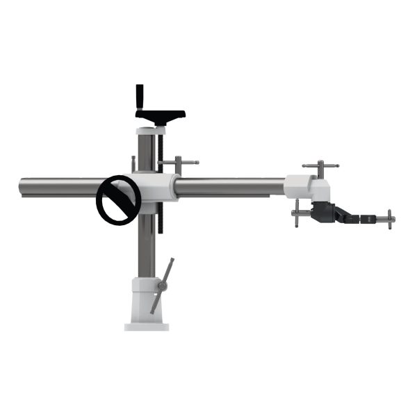 Das Universal Stativ von Stürmer Maschinen GmbH ist flexibel einstell- und schwenkbar für den Einsatz in horizontalen und vertikalen Positionen, mit einer maximalen Ausladung von 1050 mm und einem Nettogewicht von etwa 38,5 kg.