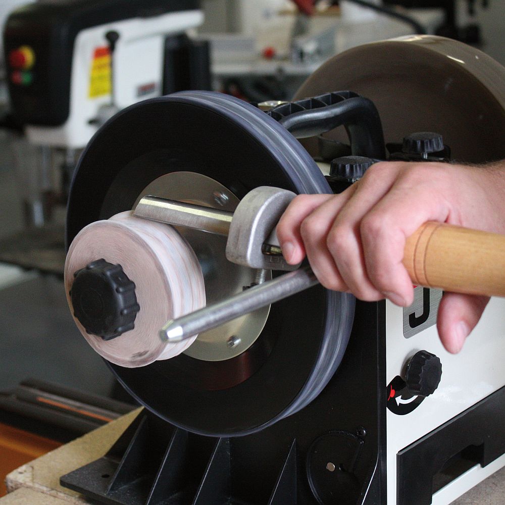 ✓ Lieferumfang: Schleifscheibe, Honscheibe, Körnungsstein, Werkzeughalter, Winkelmesser, Honpaste, Stützarm, Schulungs-DVD.