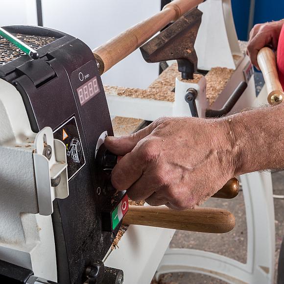 • Spindelverriegelung von der Vorderseite der Drechselbank zugänglich.