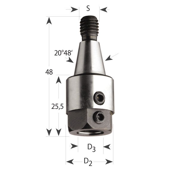 Startseite » Shop » Klemmhülse 304 mit konischer 20°48′ Fläche, M8 – für Bohrer S10, D19,5×28,3×46 M8 L