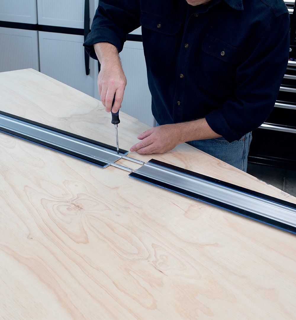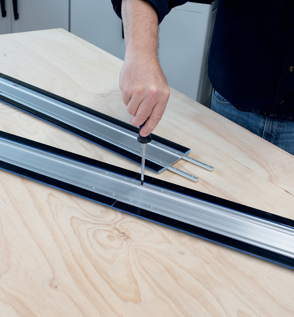 Verlängern Sie Ihre Kreg-Führungsschiene auf bis zu 2540 mm. Die Verlängerung lässt sich einfach anbringen und sorgt gleichzeitig für einen perfekt geraden, gratfreien Schnitt auf Platten wie Sperrholz und MDF. So können Sie jederzeit und überall lange Schnitte durchführen.
