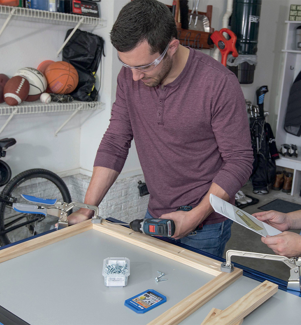 Die Werkbankzwinge Automaxx ist ideal für die Arbeit mit Kreg-Produkten, geeignet für Montage, Fräsen, Schneiden, Schleifen, Bohren und andere Holzarbeiten. Es ist kompatibel mit Kreg-Führungsprofilen, Klemmtisch, Klemmplatte und tragbarem Arbeitstisch. Die Werkbankzwinge verfügt über eine große Spannfläche, die die Spannkraft gleichmäßig verteilt, ohne selbst feinste Oberflächen zu beschädigen.