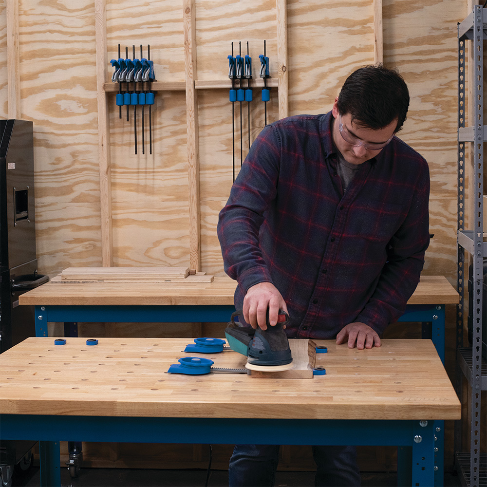 Die Kreg Universalwerkbank ist eine schlüsselfertige Lösung, die sofort einsatzbereit ist. Sie können sie jedoch auch individuell gestalten, indem Sie Kreg Untergestell-Zubehör für Regale, Schränke und Schubladen hinzufügen. Dadurch können Sie Ihre Werkbank an Ihre spezifischen Bedürfnisse anpassen und noch mehr Organisation schaffen.