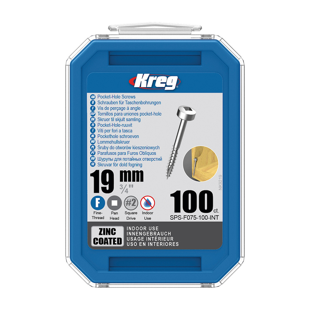 Kreg Zinc Pan-Head Schrauben sind eine gute Wahl für verschiedene Innenarbeiten. Verzinkte Schrauben bieten ausreichend Korrosionsschutz und dienen als kostengünstige Alternative zu Blue-Kote und Stainless Kreg Schrauben.