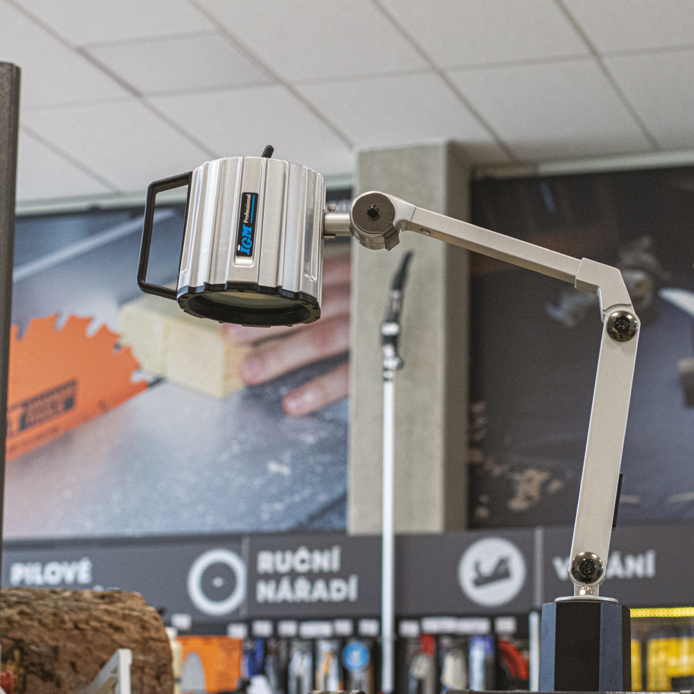 Die IGM LED 14S Arbeitsleuchte ist perfekt für eine hochwertige Beleuchtung Ihres Arbeitsbereichs oder Ihrer Maschine. Der robuste Aluminiumschirm ist nach IP65-Standard gefertigt und somit staubund wasserdicht. Der 525 mm lange Aluminium-Gelenkarm bietet dank seiner 4 Gelenke eine hohe Beweglichkeit. Die Abdeckung des Schirms ist aus gefrostetem mattiertem Hartglas hergestellt, das dank seiner Eigenschaften das Licht streut und bessere Lichtverhältnisse schafft als klares Glas. Die Leuchte ist mit einer hochwertigen LED-Lampe mit einer Leistung von 14 W ausgestattet. Die LED-Lampe hält bis zu 50 000 Stunden bei geringem Energieverbrauch. Die Leuchte wird mit 4 Schrauben mit einem Abstand von 60 mm befestigt. Wenn Sie die Leuchte an einem Regal, einer Wand oder einem Schreibtisch montieren möchten, ist Montagezubehör erhältlich (nicht im Lieferumfang enthalten) – Spannplatte, Klemme oder Magnethalterung.