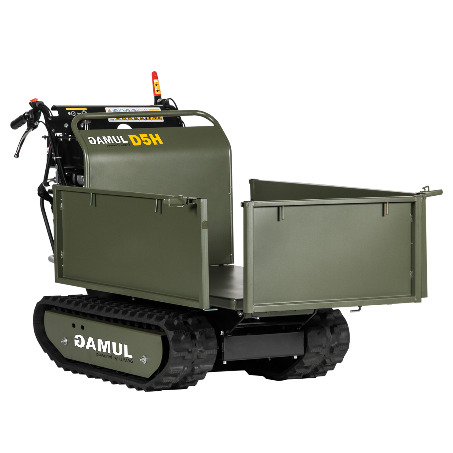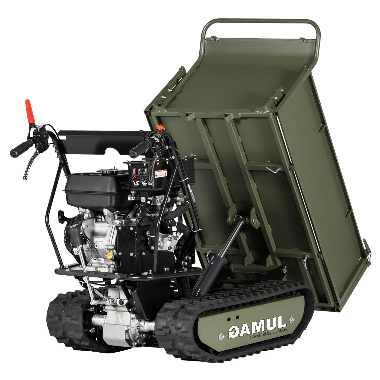 Der benzinbetriebene Mini-Raupendumper GAMUL-D5H mit einer Tragkraft von bis zu 500 kg und einem 4-Takt OHV-Benzinmotor ist ideal für den Transport von Schütt- und Stückgut in verschiedenen Branchen. Mit seiner schmalen Bauweise, kompakten Abmessungen und hydraulischen Kippmulde bietet er eine einfache Handhabung und ist dank seiner robusten Stahlkonstruktion und leistungsstarken Hydraulikzylinder besonders langlebig und zuverlässig.