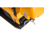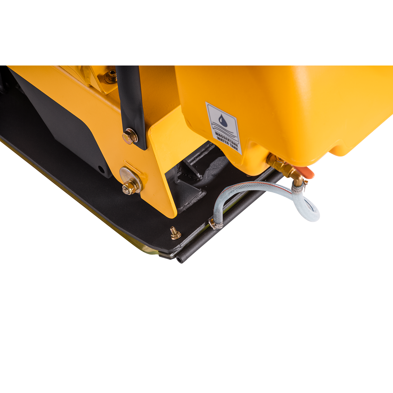 • Die Rüttelplatte ist einfach zu bedienen und sicher in der Anwendung, mit einem robusten Gehäuse aus Stahl und einem klappbaren Handgriff für den einfachen Transport.