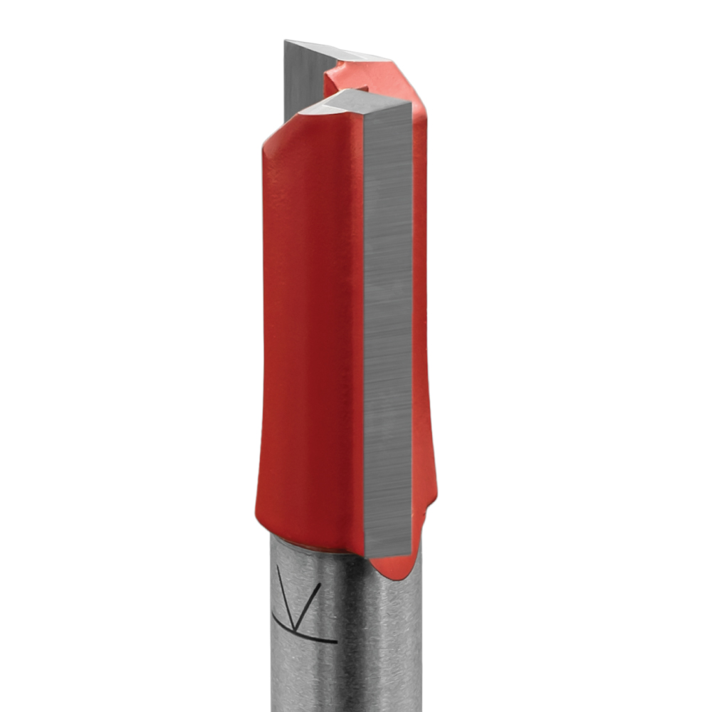Eine tiefrote PTFE-Teflon-Beschichtung auf der Oberfläche des Fräsers schützt das Werkzeug vor Korrosion, verringert die Reibung und erhöht die Widerstandsfähigkeit gegen Späne, Leim und Harz. Dank der Beschichtung bleibt der Fräser sauber und bewahrt seine Schneide länger als herkömmliche Fräser.