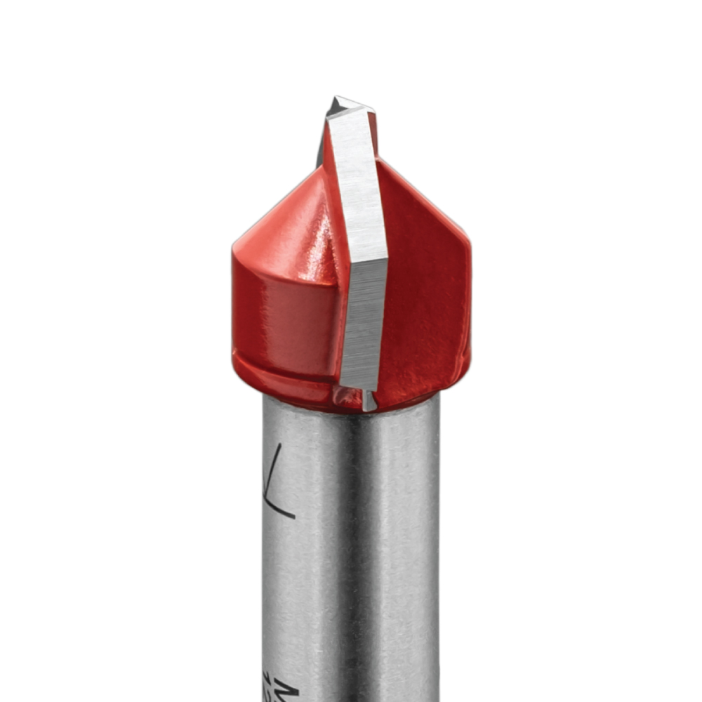 Eine tiefrote PTFE-Teflon-Beschichtung auf der Oberfläche des Fräsers schützt das Werkzeug vor Korrosion, verringert die Reibung und erhöht die Widerstandsfähigkeit gegen Späne, Leim und Harz. Dank der Beschichtung bleibt der Fräser sauber und bewahrt seine Schneide länger als herkömmliche Fräser.
