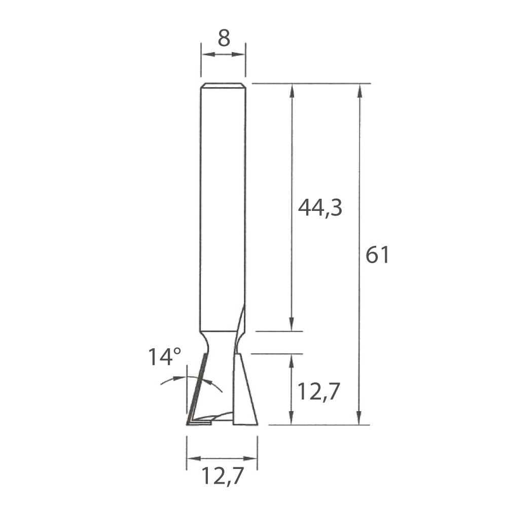 M118 Zinkenfräser – 14° D12,7×12,7 L61 S=8 HW