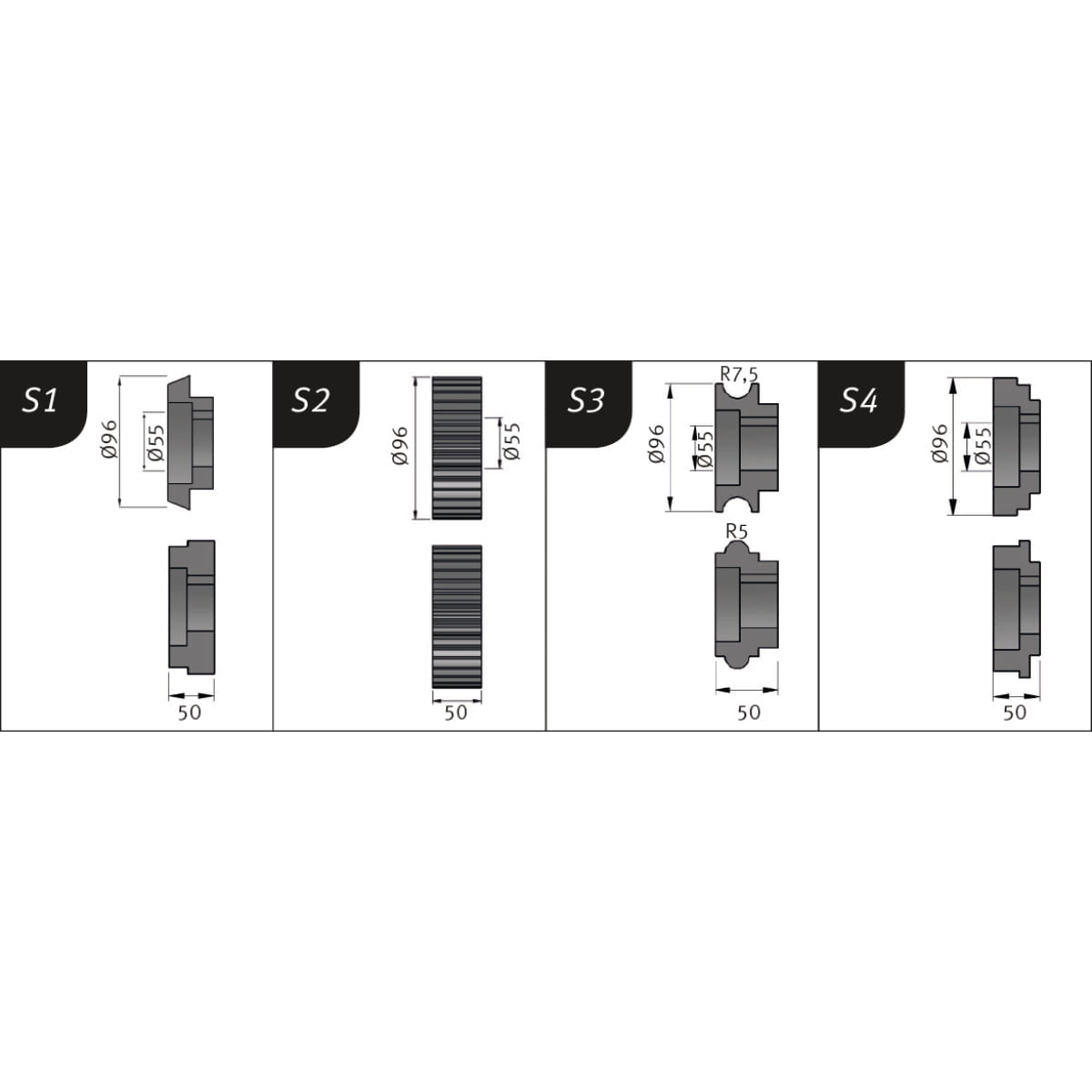 Metallkraft Biegerollensatz Typ E3, Ø 116 x 36 x 50 mm, R 5+9 / 9+5 mm