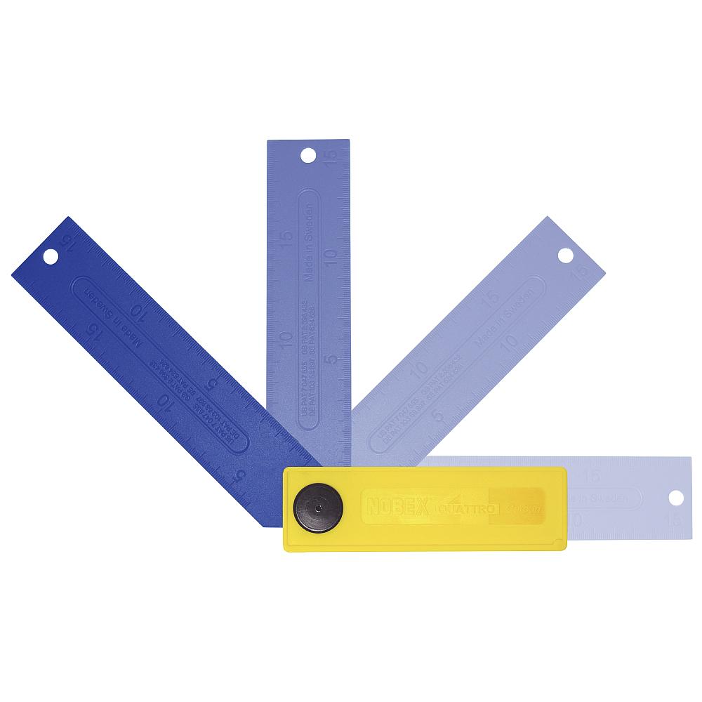 Nobex Quattro Carbon ist ein Zusammenklappbar Gehrungswinkel mit drei Einrastungen, leicht auf- und zuzuklappen und eignet sich dank seines geringen Gewichts von nur 55 g ideal für die Tasche jedes Tischlers oder Schreiners. Die Genauigkeit bei der Winkeleinstellung ist +/- 0,08°. Das Winkellineal hat eine beidseitige Skala, in mm auf einer Seite und Zoll auf der anderen.