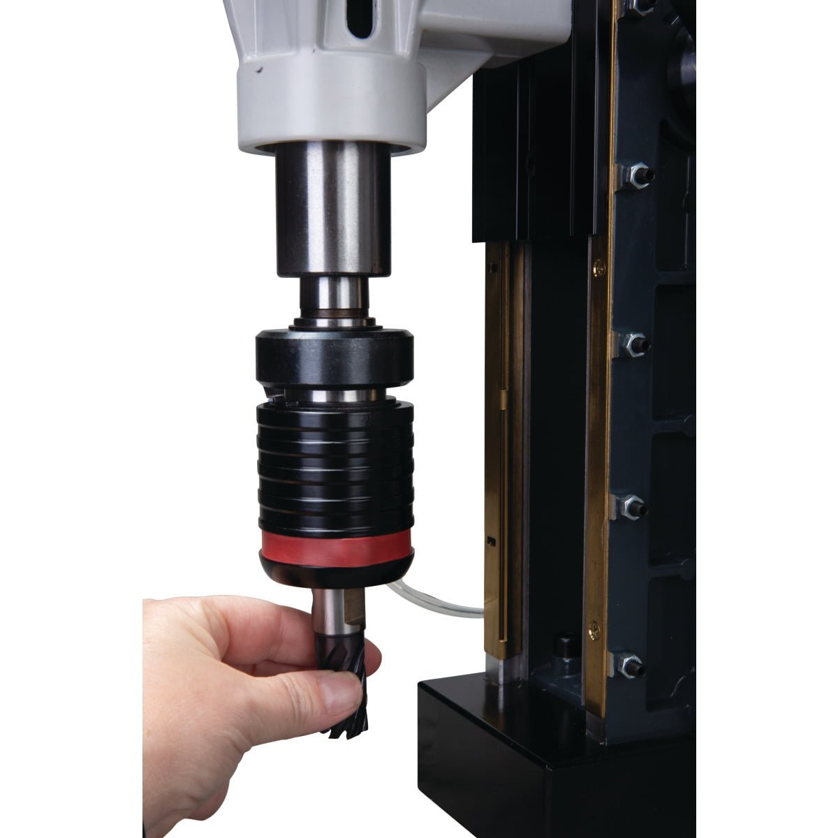 • Stabile Bohrerführung durch lang ausgelegte und tief montierte Pinolenhalterung