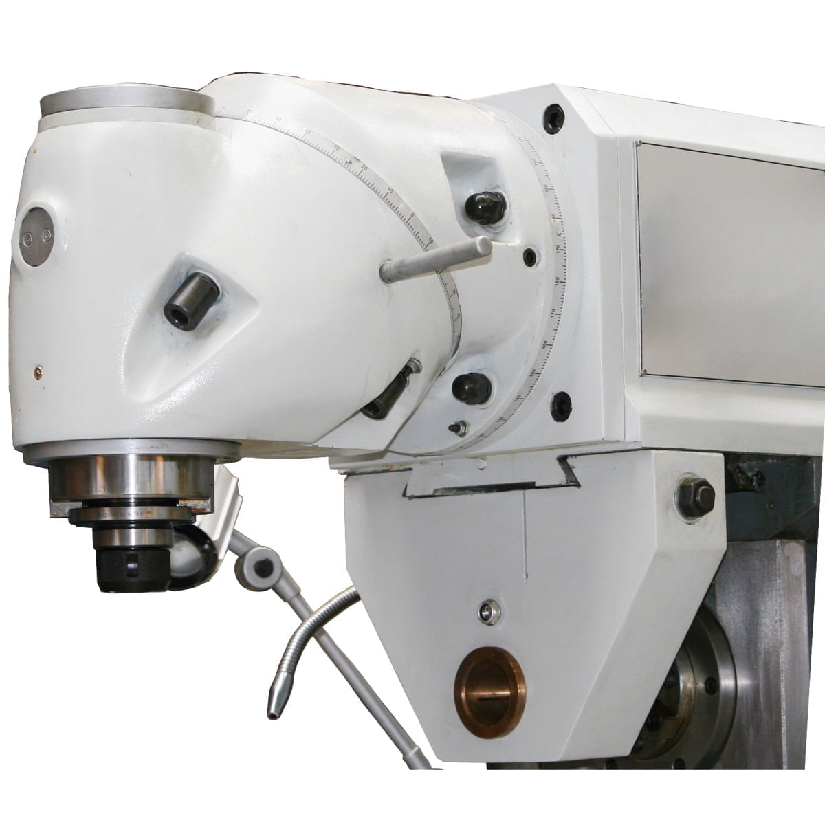 | Vertikalspindel | Vertikalspindel Spindelaufnahme: ISO 40 DIN 2080 | Vertikalspindel Drehbereich Fräskopf X – Y Ebene: 360 ° | Vertikalspindel Drehbereich Fräskopf Z – X Ebene: 360 ° | Vertikalspindel Drehzahlbereich: 45 – 1600 min¯¹ | Vertikalspindel Anzahl der Drehzahlbereiche: 11 | Vertikalspindel Anzugsstange: M16 | Vertikalspindel Leistung Antriebsmotor Normalbetrieb: 2,2 kW | |