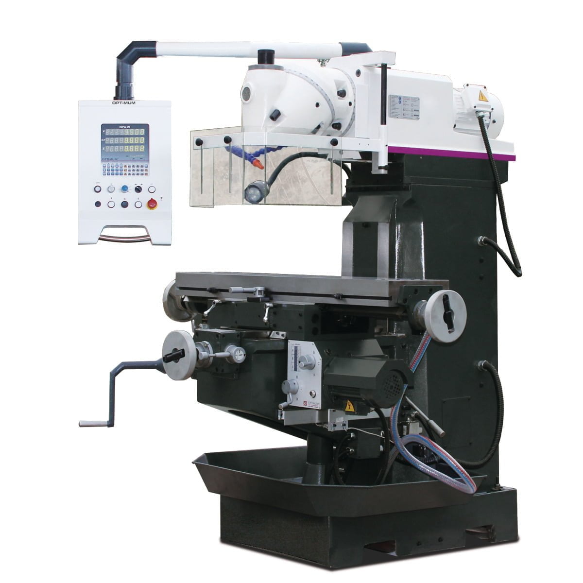 Die Optimum Maschinen Germany GmbH bietet eine robuste und vielseitig einsetzbare Maschine mit einem massiven Aufbau aus hochwertigem Meehanite-Guss. Sie zeichnet sich durch hohe Laufruhe, eine stabile Flachbettführung, Zentralschmierung und eine LED-Maschinenlampe aus. Sie bietet zudem einen Tischvorschub auf der X- und Y-Achse sowie eine elektrische Tischhöhenverstellung auf der Z-Achse. Mit einer Länge von 1540 mm, einer Breite von 1355 mm, einer Höhe von 1650 mm und einem Gewicht von 1300 kg ist sie optimal dimensioniert. Hinzu kommt eine digitale Positionsanzeige DPA 31 Plus und eine einfache Bedienung der Schaltelemente.