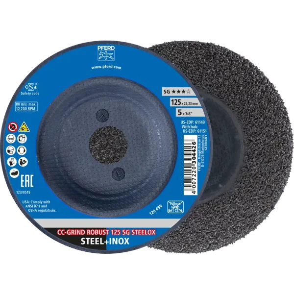 Das breite Programm der Leistungs-Linie SG bietet für jede Anwendung und jeden Werkstoff eine leistungsstarke Werkzeuglösung. Werkzeuge der Leistungs-Linie SG erzielen beste Arbeitsergebnisse bei höchster Wirtschaftlichkeit. Mit der CC-GRIND ROBUST bietet PFERD TOOLS die moderne, leistungsstarke und ergonomische Alternative zur Schrupp-, Fächer- und Fiberscheibe. Schleifscheibe für Stahl und Edelstahl (INOX) mit hoher Schleiffreudigkeit und höchster Standzeit.