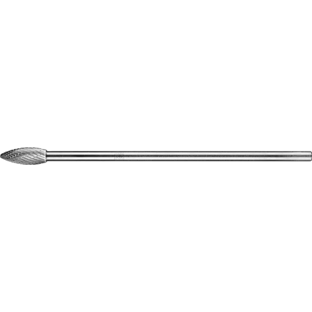 Zahnung 3 PLUS ist kreuzverzahnt und eignet sich besonders gut zur Zerspanung von Gusseisen, Stahl, Edelstahl (INOX), Nickelbasis- und Titanlegierungen. Sie zeichnet sich durch einen hohen Materialabtrag aus. Hartmetallfrässtifte für universelle Anwendungen eignen sich zur Fein- und Grobzerspanung auf den wichtigsten industriell verwendeten Werkstoffen. Sie bieten eine gute Zerspanungsleistung und können werkstoffübergreifend eingesetzt werden. Flammenförmiger Frässtift nach ISO 7755/8 mit Verzahnung nach DIN 8033. Hartmetallfrässtifte mit Langschaft eignen sich hervorragend für die wirtschaftliche Bearbeitung von kleinen, schwer zugänglichen Stellen an Bauteilen. Sie können, wenn es der Einsatz erfordert, gekürzt werden. Diese Ausführung verfügt über einen Stahllangschaft.