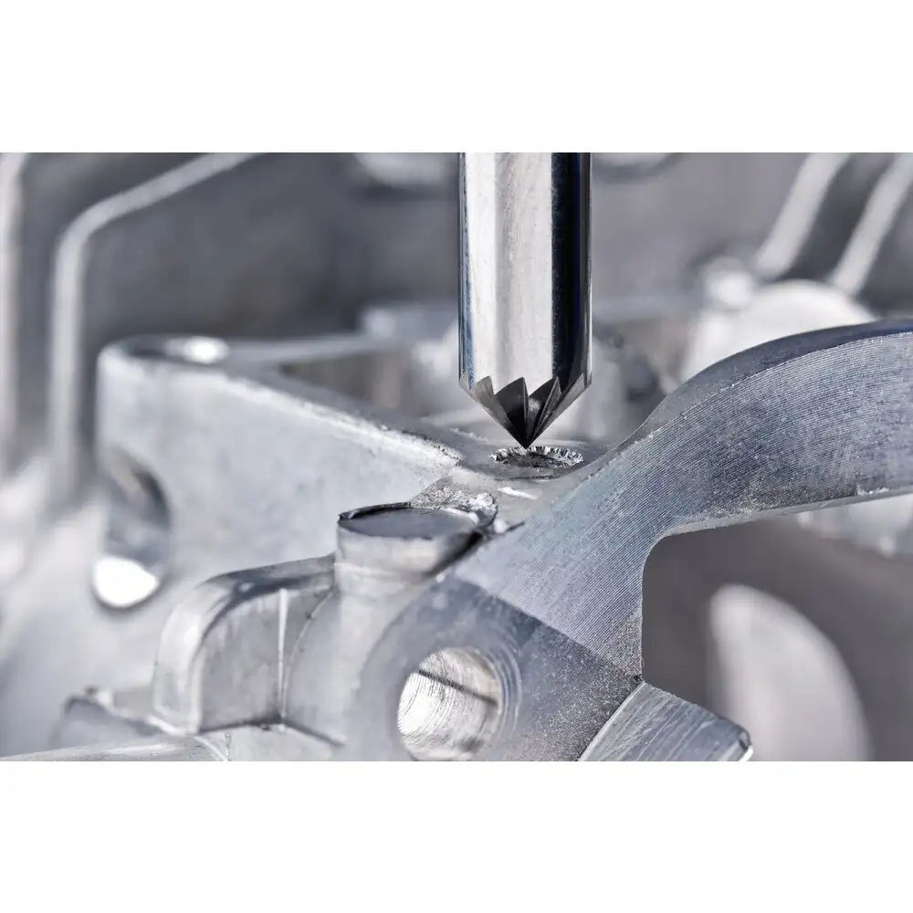 Zahnung 3 eignet sich besonders gut zur Zerspanung von Gusseisen, Stahl, Edelstahl (INOX), Nickelbasis- und Titanlegierungen. Sie zeichnet sich durch einen hohen Materialabtrag aus und erzeugt gute Oberflächen. Hartmetallfrässtifte für universelle Anwendungen eignen sich zur Fein- und Grobzerspanung auf den wichtigsten industriell verwendeten Werkstoffen. Sie bieten eine gute Zerspanungsleistung und können werkstoffübergreifend eingesetzt werden. Kegelsenkförmiger Frässtift nach DIN 8032 mit Verzahnung nach DIN 8033 mit Winkel (90°). Zum flexiblen Senken und Anfasen geeignet. Hartmetallfrässtifte für die flexible Kantenbearbeitung erzeugen durch ihre speziellen Formen nahezu exakte Fasen bzw. Radien und können auch an schwer zugänglichen Stellen flexibel eingesetzt werden. Sie werden vorwiegend im Stahl- und Aluminiumbau eingesetzt und wurden speziell zum Anfasen, Entgraten sowie zur Verrundung von Kanten entwickelt. Die Ausführung ist ein Doppelender, das heißt sie ist beidseitig verzahnt und einsetzbar.