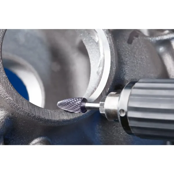 Zahnung 3 PLUS mit HICOAT-Beschichtung HC-FEP zeichnet sich durch eine hohe Härte und Verschleißfestigkeit aus. Sie erlaubt eine effektive Spanabfuhr durch verbesserte Gleiteigenschaften und ist sehr temperaturbeständig. Sie ermöglicht eine längere Standzeit der Werkzeuge sowie den Einsatz im höheren Schnittgeschwindigkeitsbereich im Vergleich zu unbeschichteten Frässtiften. Rundbogenförmiger Frässtift nach DIN 8032 mit Verzahnung nach DIN 8033.