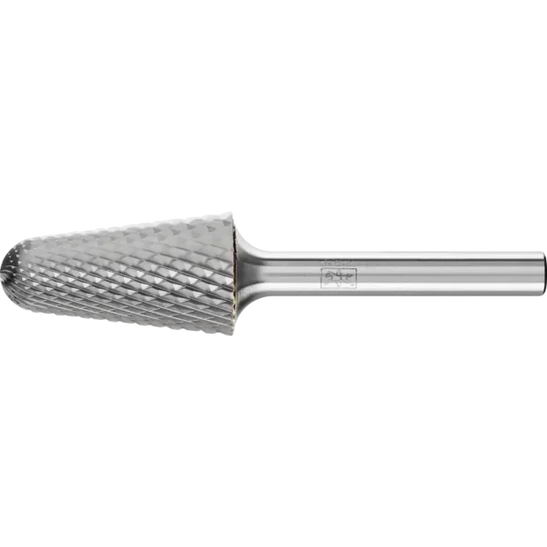 Zahnung 4 eignet sich besonders gut zur Zerspanung von Edelstahl (INOX), Stahl und hochwarmfesten Werkstoffen wie Nickelbasis-, Kobaltbasislegierungen. Sie zeichnet sich durch einen hohen Materialabtrag mit kurzen Spänen aus und erzeugt gute Oberflächen. Hartmetallfrässtifte für universelle Anwendungen eignen sich zur Fein- und Grobzerspanung auf den wichtigsten industriell verwendeten Werkstoffen. Sie bieten eine gute Zerspanungsleistung und können werkstoffübergreifend eingesetzt werden. Rundkegelförmiger Frässtift mit runder Kuppe nach DIN 8032 und Verzahnung nach DIN 8033.