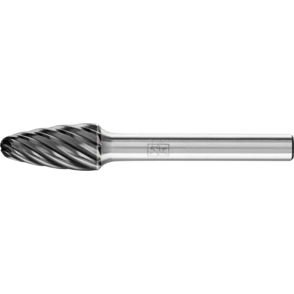 Hochleistungszahnung INOX mit HICOAT-Beschichtung HC-FEP zeichnet sich durch eine hohe Härte und Verschleißfestigkeit aus. Sie erlaubt eine effektive Spanabfuhr durch verbesserte Gleiteigenschaften und ist sehr temperaturbeständig. Sie ermöglicht eine längere Standzeit der Werkzeuge sowie den Einsatz im höheren Schnittgeschwindigkeitsbereich im Vergleich zu unbeschichteten Frässtiften. Rundbogenförmiger Frässtift nach DIN 8032.