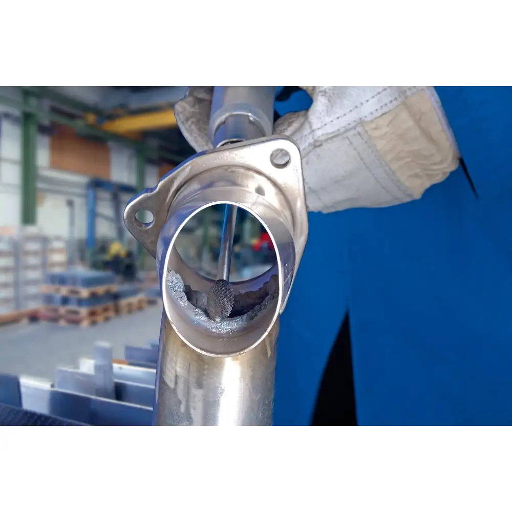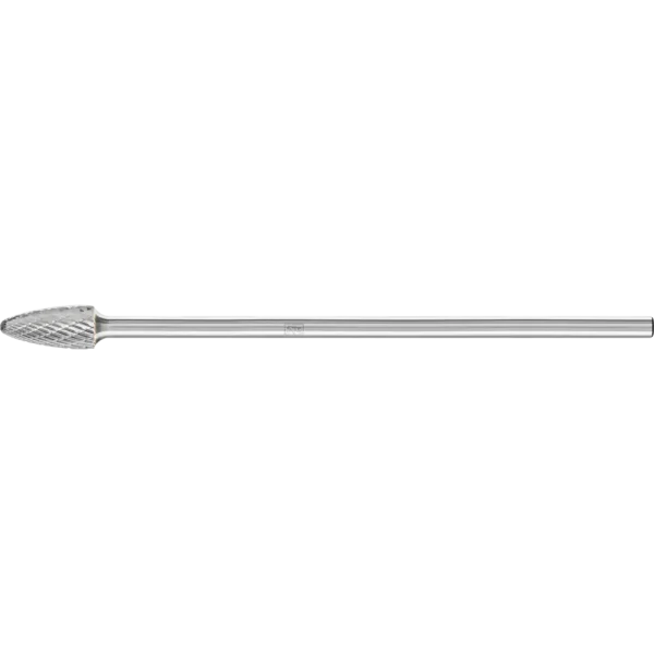 Die Zahnung TOUGH wurde speziell für raue Einsätze in Werften, Gießereien und im Stahlbau entwickelt. Sie eignet sich auch für den Einsatz in allen Fertigungsbereichen, in denen aufgrund schwieriger Fertigungsumstände häufig Zahnausbrüche oder Beschädigungen an herkömmlichen Frässtiften auftreten. Hartmetallfrässtifte mit der Zahnung TOUGH sind besonders aggressiv und zeichnen sich durch hohen Materialabtrag aus. Rundbogenförmiger Frässtift nach DIN 8032.