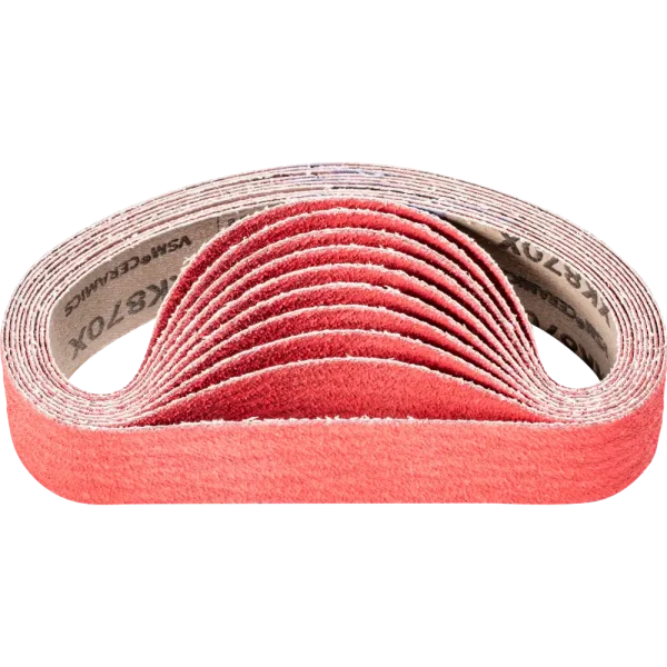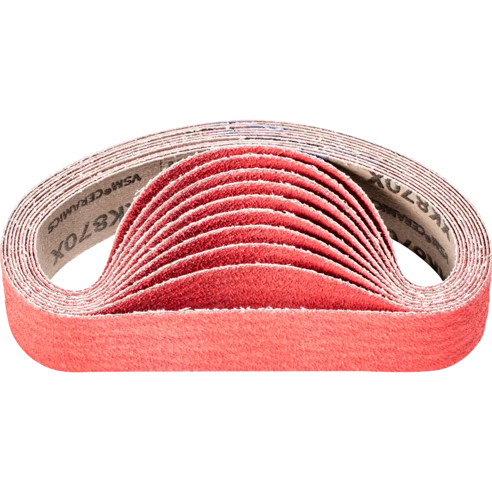 Für aggressives Schleifen mit höchster Zerspanungsleistung an harten, schlecht wärmeleitenden Werkstoffen. Konstante Höchstleistung durch sich selbst schärfendes Keramikkorn. Schleifaktive Zusätze im Belag erzielen eine deutlich höhere Abtragsleistung, verhindern das Zusetzen und bewirken einen kühleren Schliff. Kurzbänder sind auf die am Markt gängigen Bandschleifmaschinen abgestimmt. Sie werden in ISO 2976 unter der Bezeichnung „Schleifbänder“ geführt.