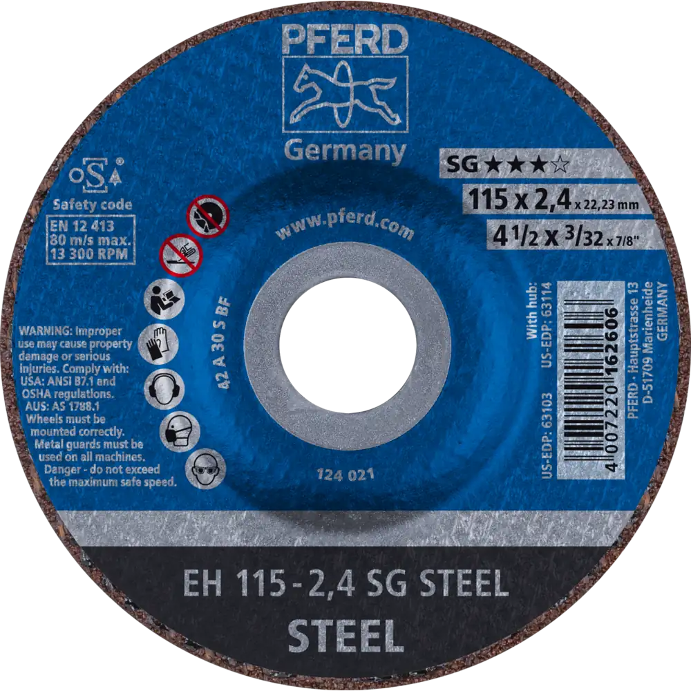 Pferd Tools Trennscheibe EH 115×2,4×22,23 mm gekröpft Leistungslinie SG STEEL für Stahl