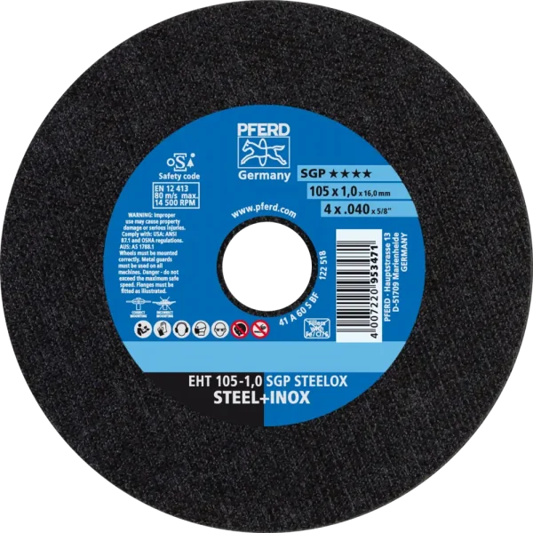Pferd Tools Trennscheibe EHT 105×1,0x16 mm gerade Speziallinie SGP STEELOX für Stahl/Edelstahl