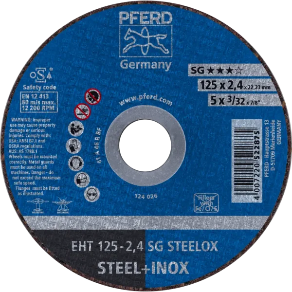 Pferd Tools Trennscheibe EHT 125×2,4×22,23 mm gerade Leistungslinie SG STEELOX für Stahl/Edelstahl
