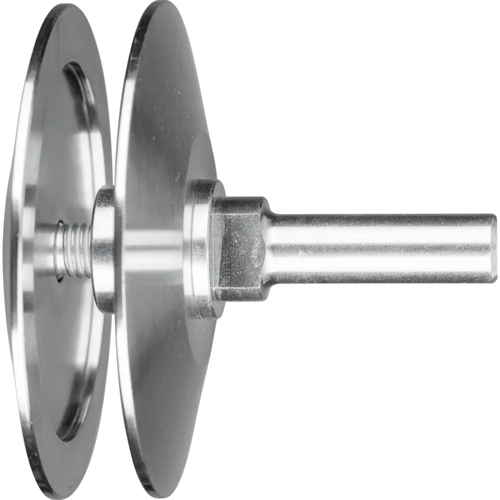 Dieser Werkzeughalter ermöglicht den Einsatz von Rundbürsten mit Bohrung auf Werkzeugantrieben mit Spannzange, z. B. Elektrogeradschleifer und Biegwellenantriebe.
