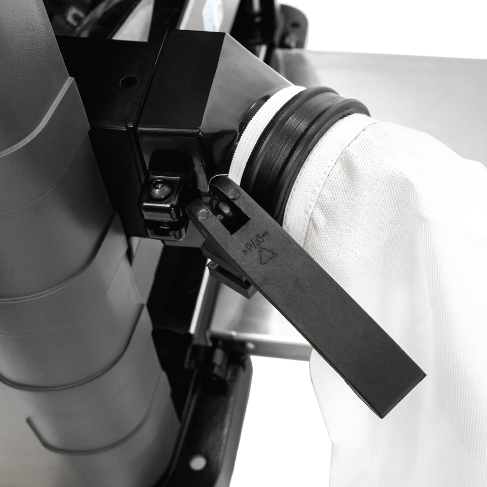 • Absaugung: integrierter Ventilator, 62-mm-Saugdüse oder Stoffbeutel