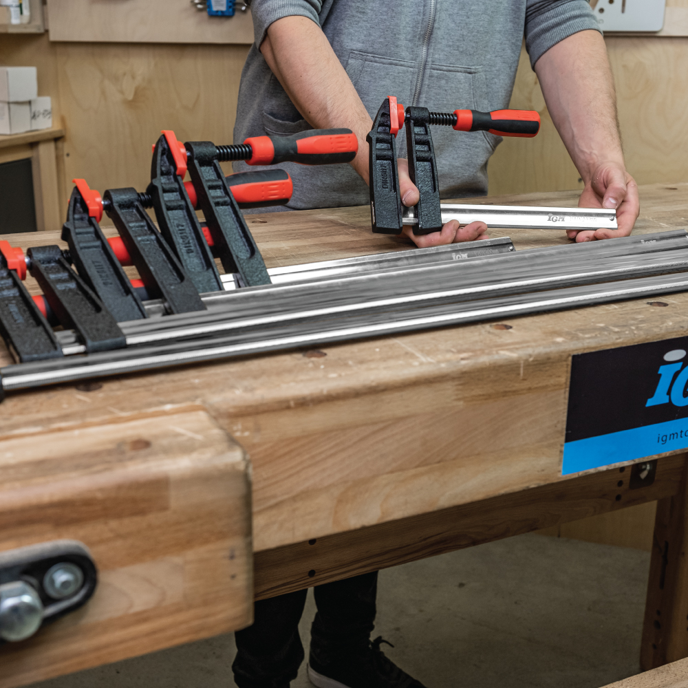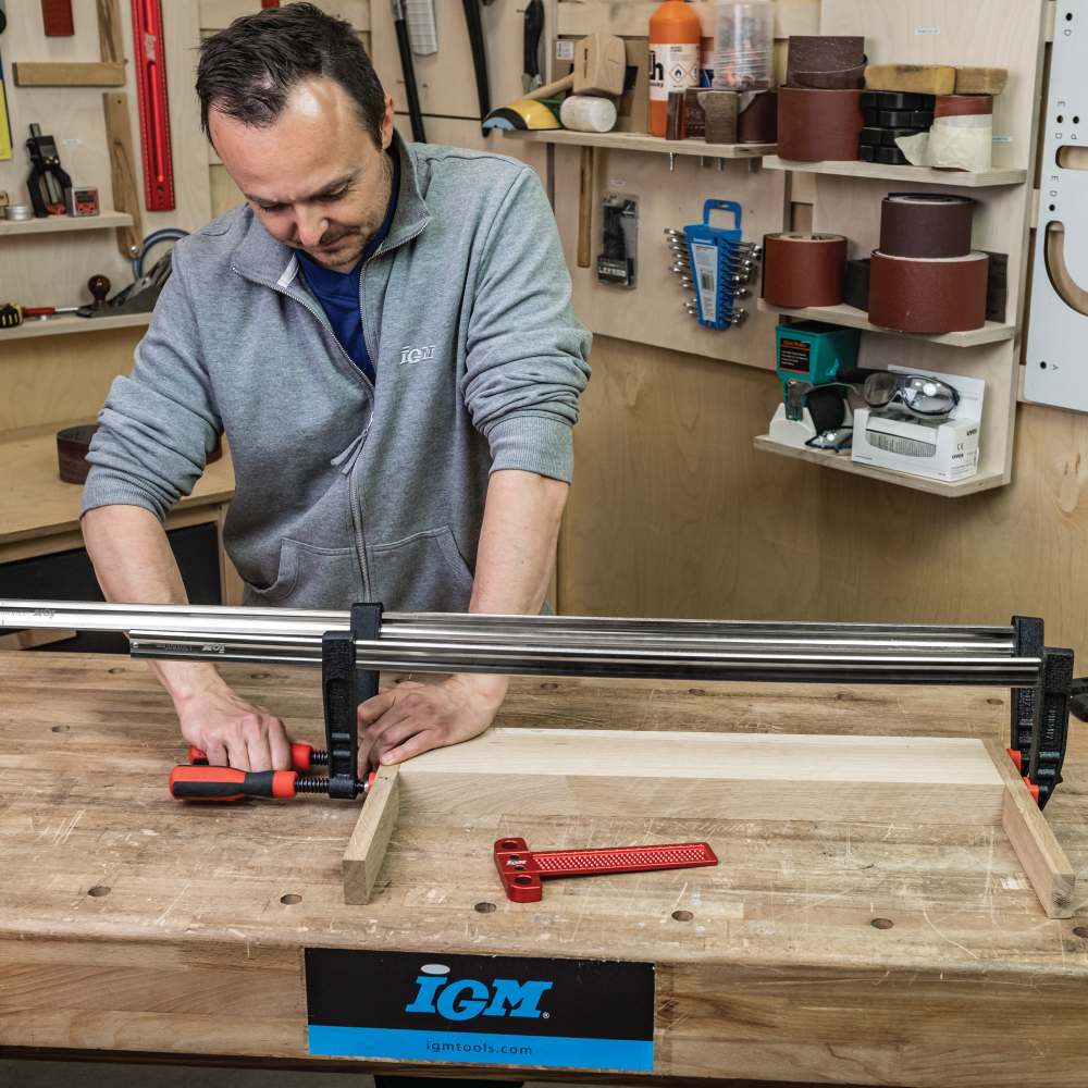 Die IGM Schraubzwingen eignen sich für jede Werkstatt zum festen Anziehen jeglicher Materialien, sei es als Tischlerversteifung beim Verleimen von Korpussen oder Strukturteilen. Schraubzwingen sind die ideale Wahl zum Ziehen, wo eine große und stabile Spannkraft benötigt wird, die bei diesen Zwingen bis zu 460 kg beträgt.