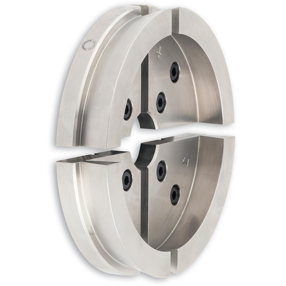 Diese Backen vom Typ M eignen sich zum Drehen großer Schalen aus massiven Werkstücken. Aus Edelstahl für Korrosionsschutz. Ausschließlich in England hergestellt.