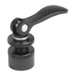 Die Stürmer Maschinen GmbH bietet ein werkzeugloses Spannsystem an, das durch Drücken-Drehen-Fixieren auf Aufspannplatten, Nut Tischen und Aluminium Systemprofilen eingesetzt werden kann und eine einstellbare Spannkraft für Bauteile unterschiedlicher Materialdicken bietet. Der Grundkörper aus brüniertem Stahl und der Exzenterhebel aus pulverbeschichtetem Aluminiumguss haben einen Durchmesser von 30 mm, sind passend für eine Nutbreite von 8 – 10 mm und eine Spannhöhe von 2 – 14 mm, und wiegen etwa 0,18 kg.