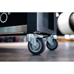 - öl- und säurebeständige Räder (Ø 125 mm) mit Fadenschutz und mit zwei Feststellbremsen