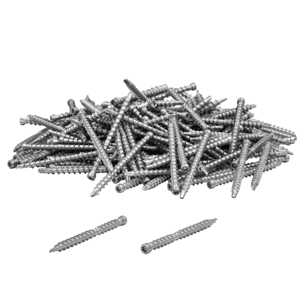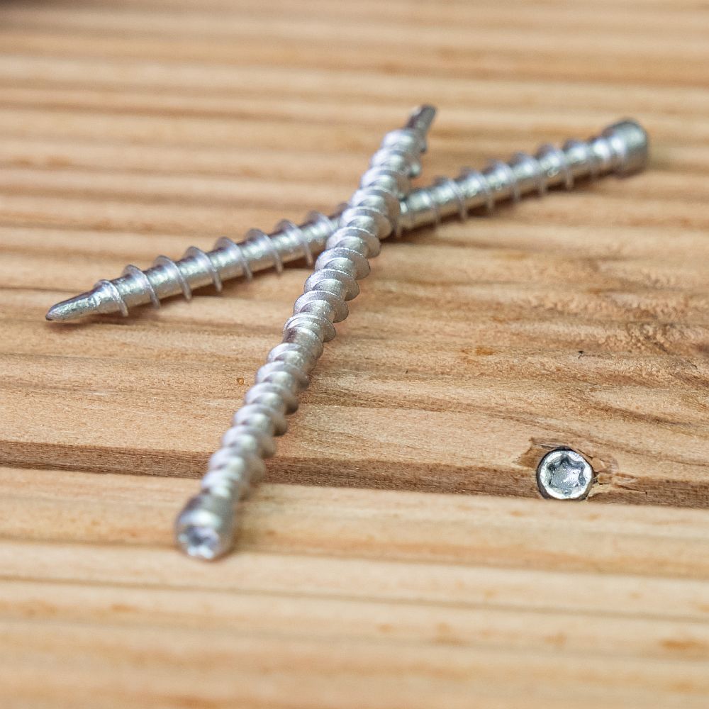 • Selbstschneidende Schrauben zur Montage von Terrassendielen.