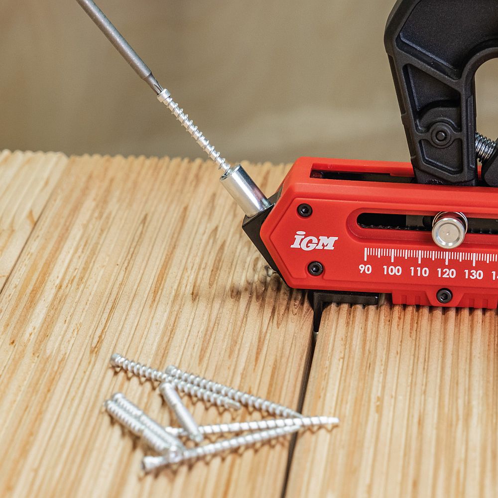Diese Terrassenschrauben sind für die Verwendung mit dem IGM-Terrassenbohrwerkzeug vorgesehen. Sie bestehen aus Stahl mit keramisch-zinkbeschichteter Ruspert-Oberfläche, was die Schrauben deutlich widerstandsfähiger gegen Korrosion und Witterungseinflüsse macht als solche mit herkömmlicher Verzinkung. Diese Komposit-Beschichtung besteht aus drei Schichten, wobei eine chemische Zwischenschicht die innere Zinkschicht mit der keramischen Oberfläche verbindet. Die Schraube mit Grobgewinde hat eine selbstschneidende Spitze. Der reduzierte Torx-T15-Kopf versinkt im Material, sodass die Schraube nicht sichtbar ist.