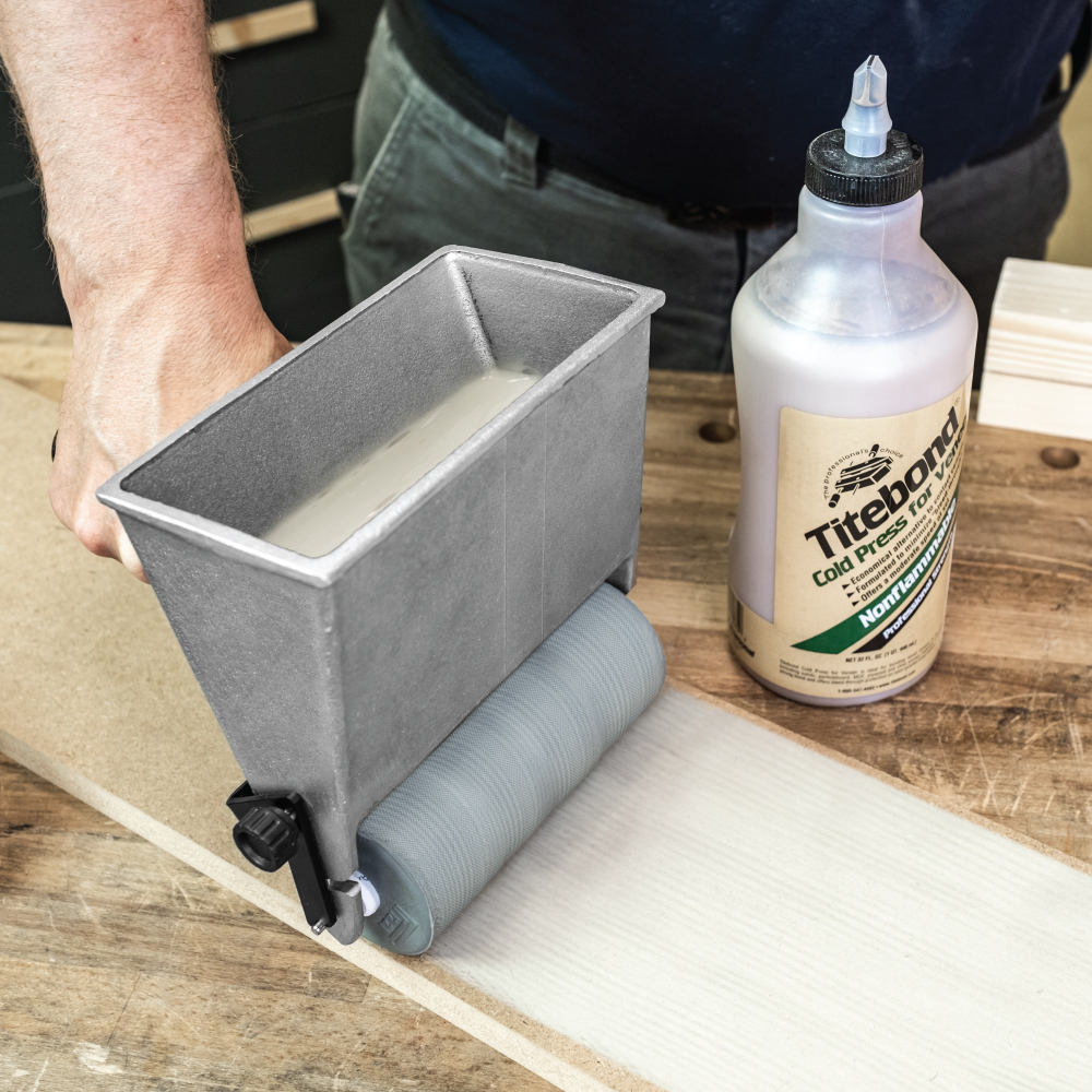 • Ausgestattet mit einer Gummiwalze zum Auftragen von Dispersionsklebern auf Wasserbasis.